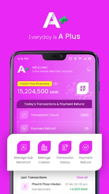Key highlights - Earn high commissions from helping customer transfer money, cash in/cash out, top up, or pay bills - Get paid quicker and more conveniently by accepting QR payment from your customers - Money is tight? Request for loans easily on the App. Contact our friendly A PLUS staff at 09770707888 today to become part of our growing network and start enjoying the benefits!