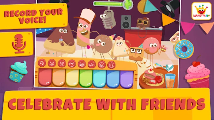 We now have the cake and the present, so all that's left is to enjoy the party with all the characters in the factory! The more the merrier! Record your voice and let all the characters sing! Listen to their funny voices and burst all the balloons.