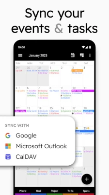 ▪ sync with Google Calendar, Outlook Calendar etc. by using the Android calendar synchronization