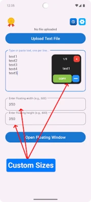 floating text, floating copy, text assistant, clipboard manager, productivity tool, multitasking window, floating bubble, text navigation, text line manager, smart clipboard, minimal UI, copy tool