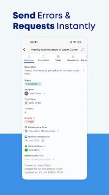 Whether capturing issues, managing assets and tickets, creating work orders, providing checklists and instructions for standard operating procedures (SOPs), or collaborating with machine suppliers via video and chat – Maintastic KARL brings clarity, consistency, and efficiency to every task.