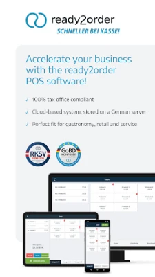 Accelerate your business! With the free ready2order app, you can turn your favorite device into a cloud-based POS system and get started right away – 100% tax office compliant!