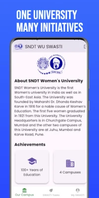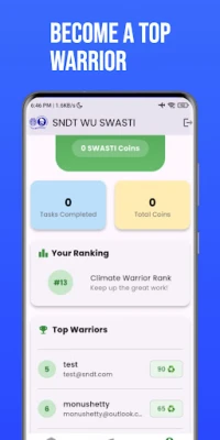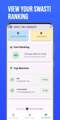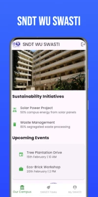 The SNDT WU SWASTI app empowers you to take meaningful action against climate change and embrace a sustainable lifestyle. Developed in partnership with SNDT Women's University, SWASTI (Sustainable, Wellness, and Action Towards a Sustainable Tomorrow) is more than just an app – it's a community of individuals committed to making a difference.
